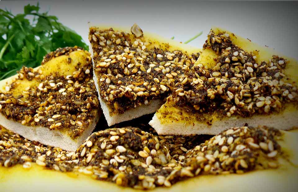 – w/ falafel, zaatar bread sesame seeds, tabbouleh, hummus, salad, pickles and tahini
